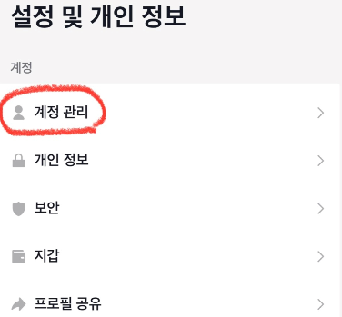 4. 계정 관리 클릭