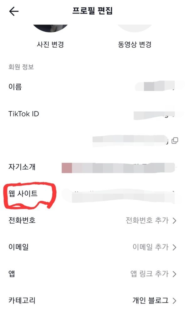 12. 다시 프로필 편집으로 들어가시게 되면 다음과 같이 웹사이트 표시줄이 생깁니다.