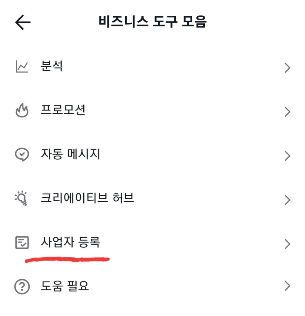 6. 등록 후 프로필 창으로 오셔서 다시 삼선 표시를 누르시면 비즈니스 도구 모음이라는 창이 뜨게 됩니다.